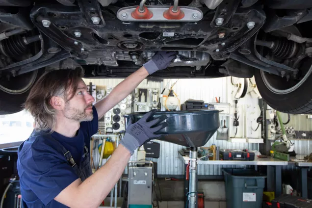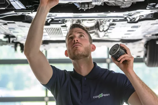 Le officine carXpert eseguono il cambio dell'olio, sostituiscono sistematicamente il filtro dell'olio e rabboccano con olio nuovo, rispettando la qualità e la quantità prescritte dal costruttore.