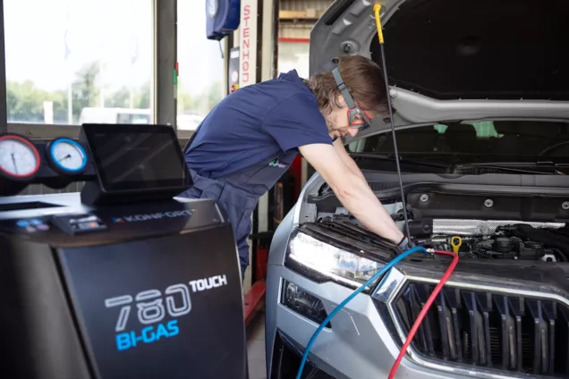 Come altre funzioni del veicolo, anche l'impianto di climatizzazione deve essere sottoposto a regolare manutenzione. Ogni anno un circuito di climatizzazione perde tra il 5 e il 10% del suo refrigerante. Un riempimento insufficiente di refrigerante riduce la potenza di raffreddamento dell'impianto di climatizzazione e provoca un sovraccarico del compressore. Il circuito di climatizzazione comprende anche diverse parti soggette a usura (filtro abitacolo, bottiglie essiccanti) che devono essere sostituite regolarmente. Infine, l'evaporatore e i condotti di ventilazione possono essere colpiti da muffe, batteri e acari. Ciò può non solo causare odori sgradevoli nell'abitacolo, ma anche provocare allergie.